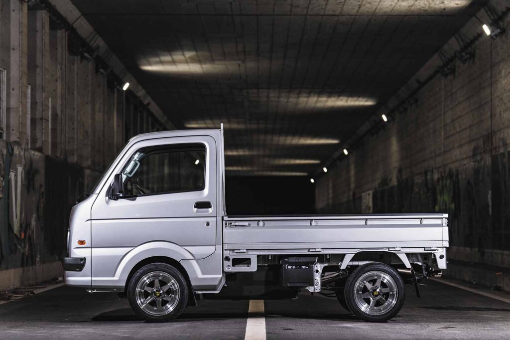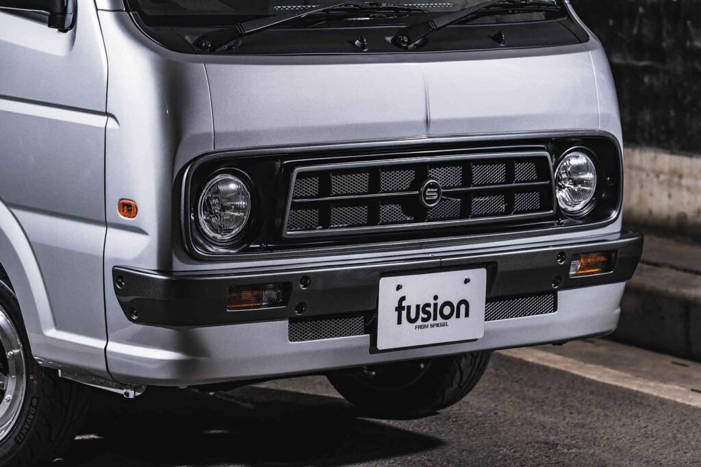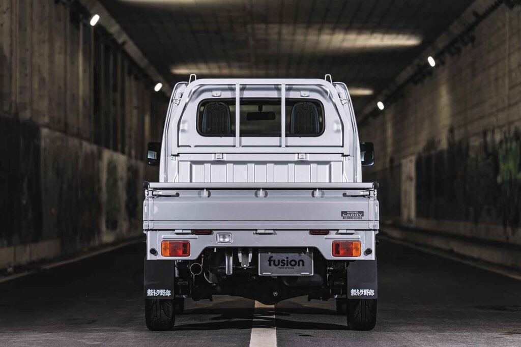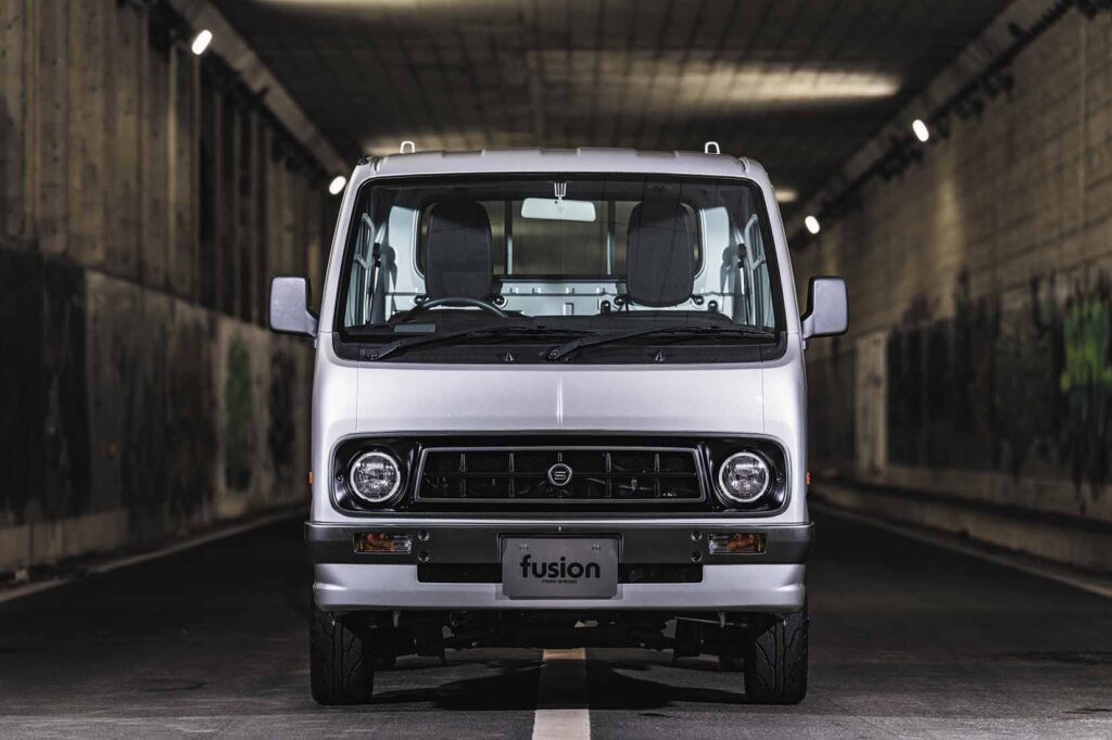 The front end wears Fusion’s face-lift kit, giving the Suzuki Carry a clean and convincing Sunny Truck-style look.